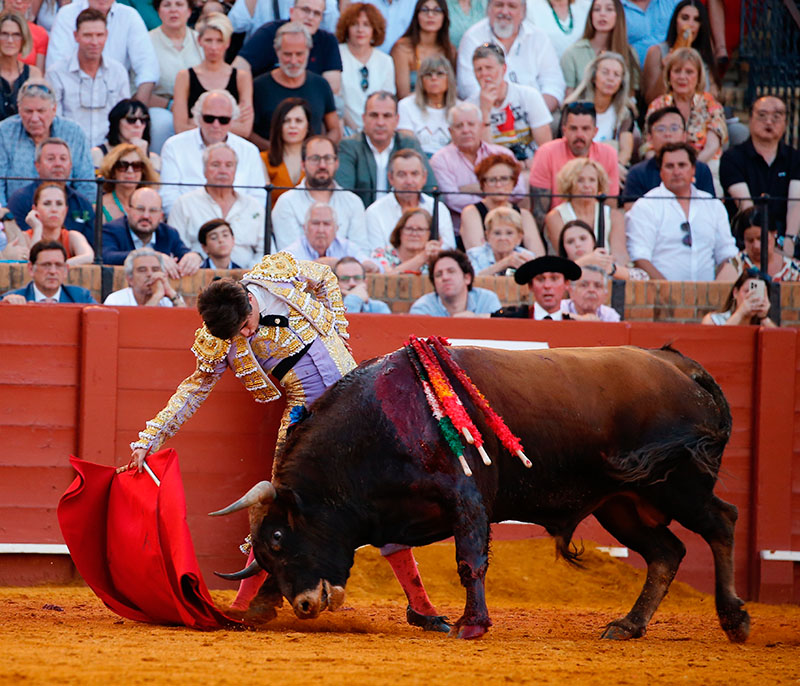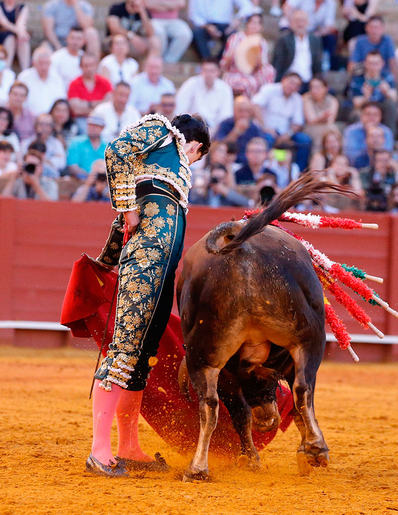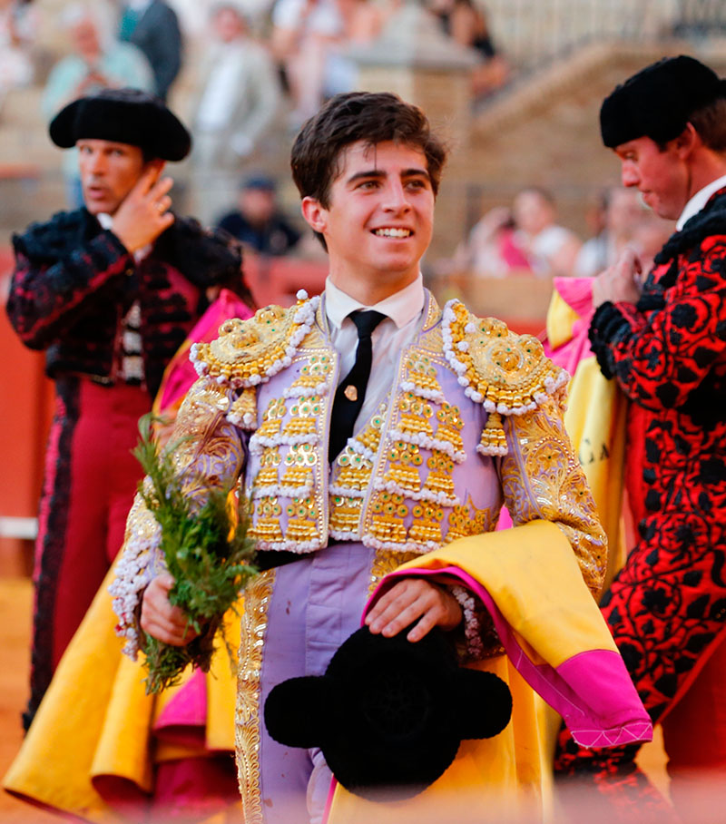 Martín Morilla, por su parte, dejó momentos de estética y expresión. Su primero condicionó el inicio tras sufrir una voltereta de salida, pero el sevillano logró acoplarse especialmente al natural, donde surgieron los pasajes más templados. La falta de acierto con el acero y una cogida al segundo intento enfriaron el ambiente. Fue en el quinto cuando alcanzó mayor conexión con el público: verónicas sentidas, un quite ajustado y una faena creciente al mejor novillo hasta entonces. La petición no fue suficiente tras el descabello y dio una vuelta al ruedo.