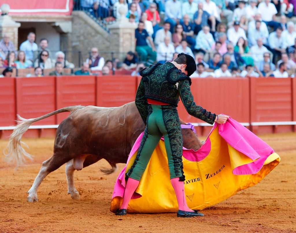 1.- Poise (Temple): This style prioritises calmness, smooth and unhurried movements, and control when executing each manoeuvre. The aim is to soften the bull’s charge and guide it gently with the cape or muleta, rather than dominating it through sheer bravery or physical strength. In the Sevillian School, expression and feeling take precedence.