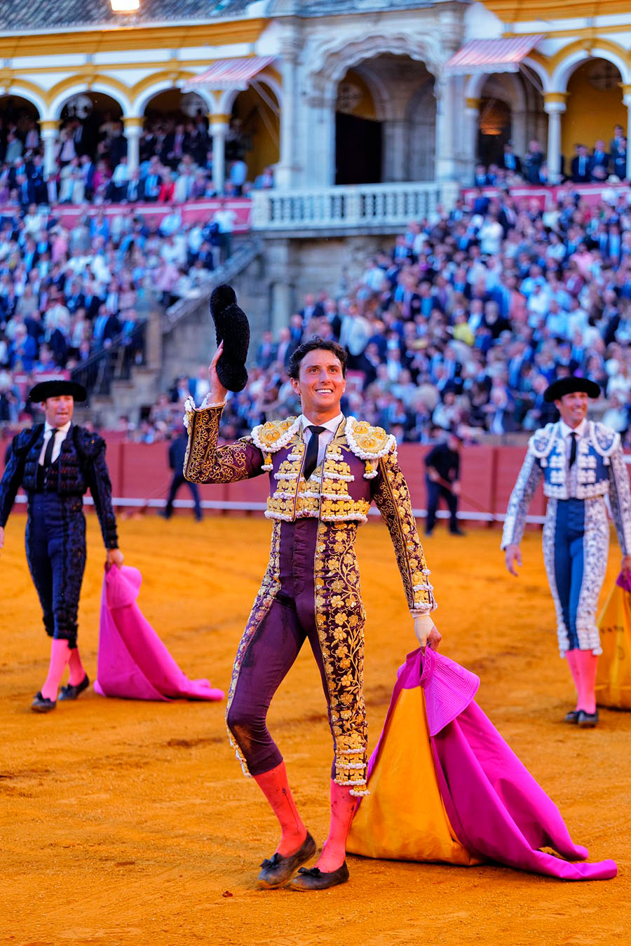 Inicio de la nueva etapa de Lances de Futuro al frente del coso sevillano. Interpretación del Himno Nacional antes del paseíllo y minuto de silencio en memoria de diversas víctimas y figuras del toreo recientemente fallecidas. Morante fue ovacionado antes de hacer el paseíllo.